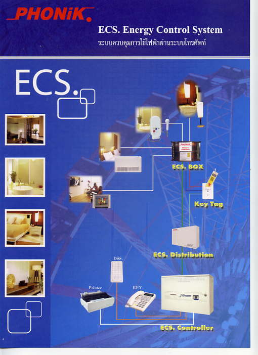 ระบบควบคุมการใช้ไฟฟ้า ผ่านระบบโทรศัพท์เพื่อเป็นการตอบสนองต่อการประหยัดพลังงาน และควบคุมการใช้งานเครื่องใช้ไฟฟ้าประจำห้อง ระบบ ECS สามารถตั้งหมายเลขเปิด-ปิด ไฟให้ตรงกับหมายเลขห้อง และหมายเลขโทรศัพท์ภายในห้องได้